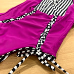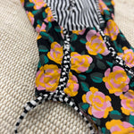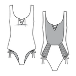 This moderately cheeky one piece swimsuit is our best-selling monokini but with added length in the midsection. Signature corset details down the booty and neckline add sexy details to this bathing suit that are flattering and functional. All print are reversible. True to size, should fit snug when dry, always relaxes once wet.