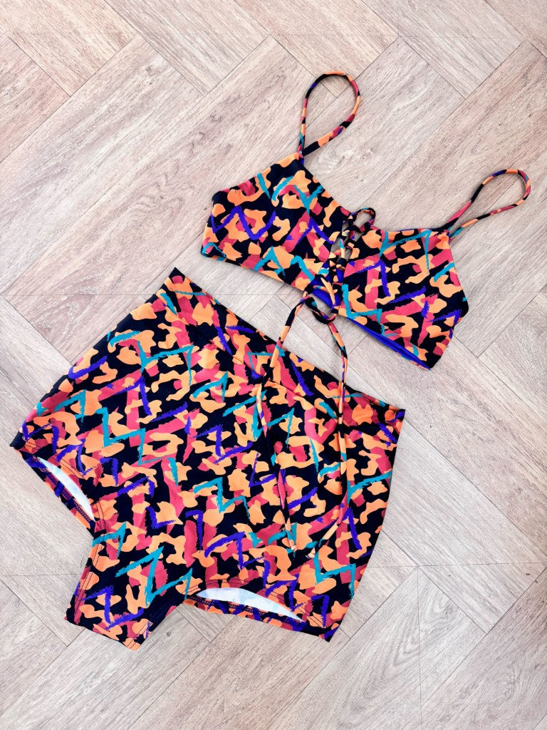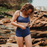 Shorts style bottoms, high waist. Retro inspired, so versatile that they can be worn as a swim suit, cover up or yoga short.