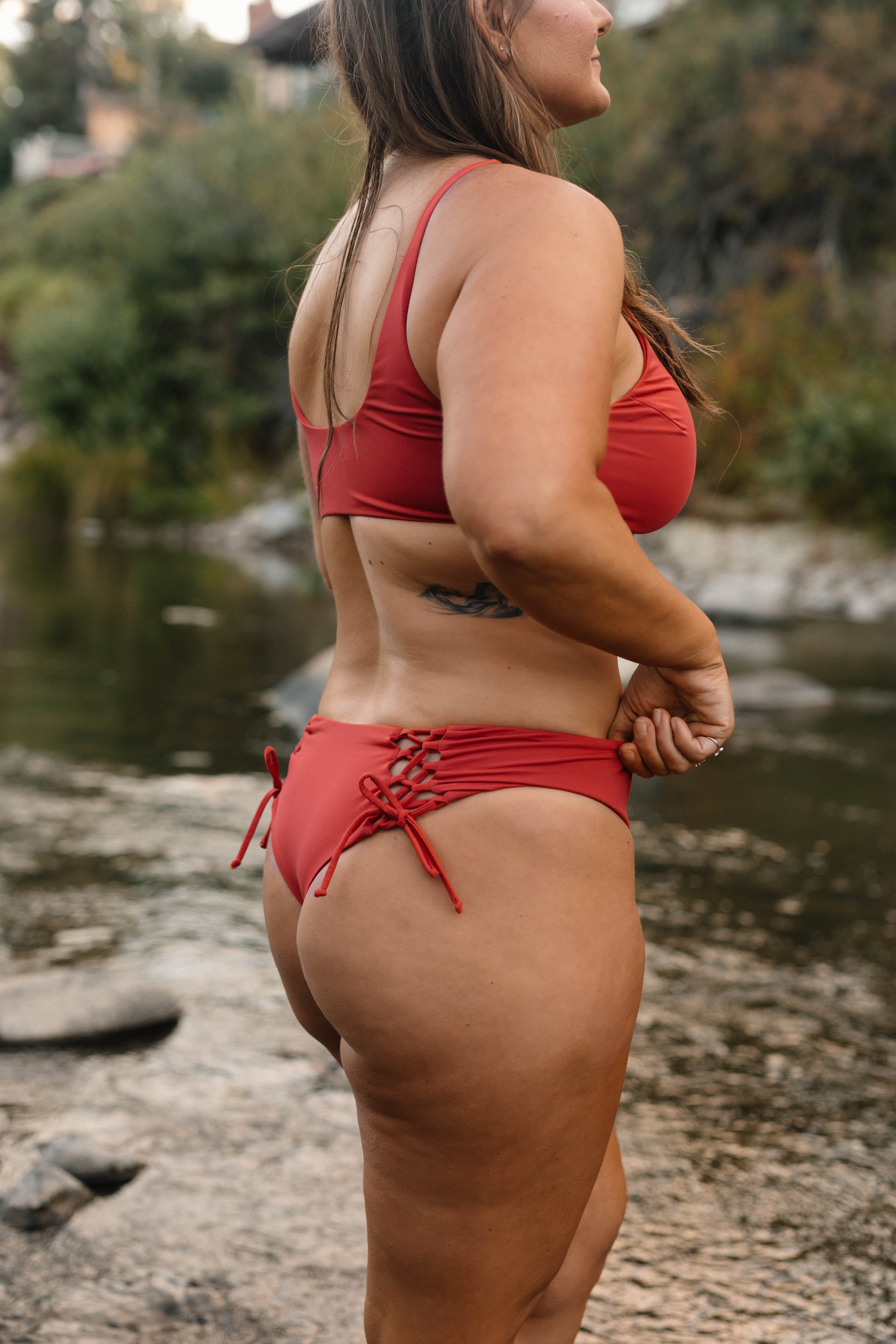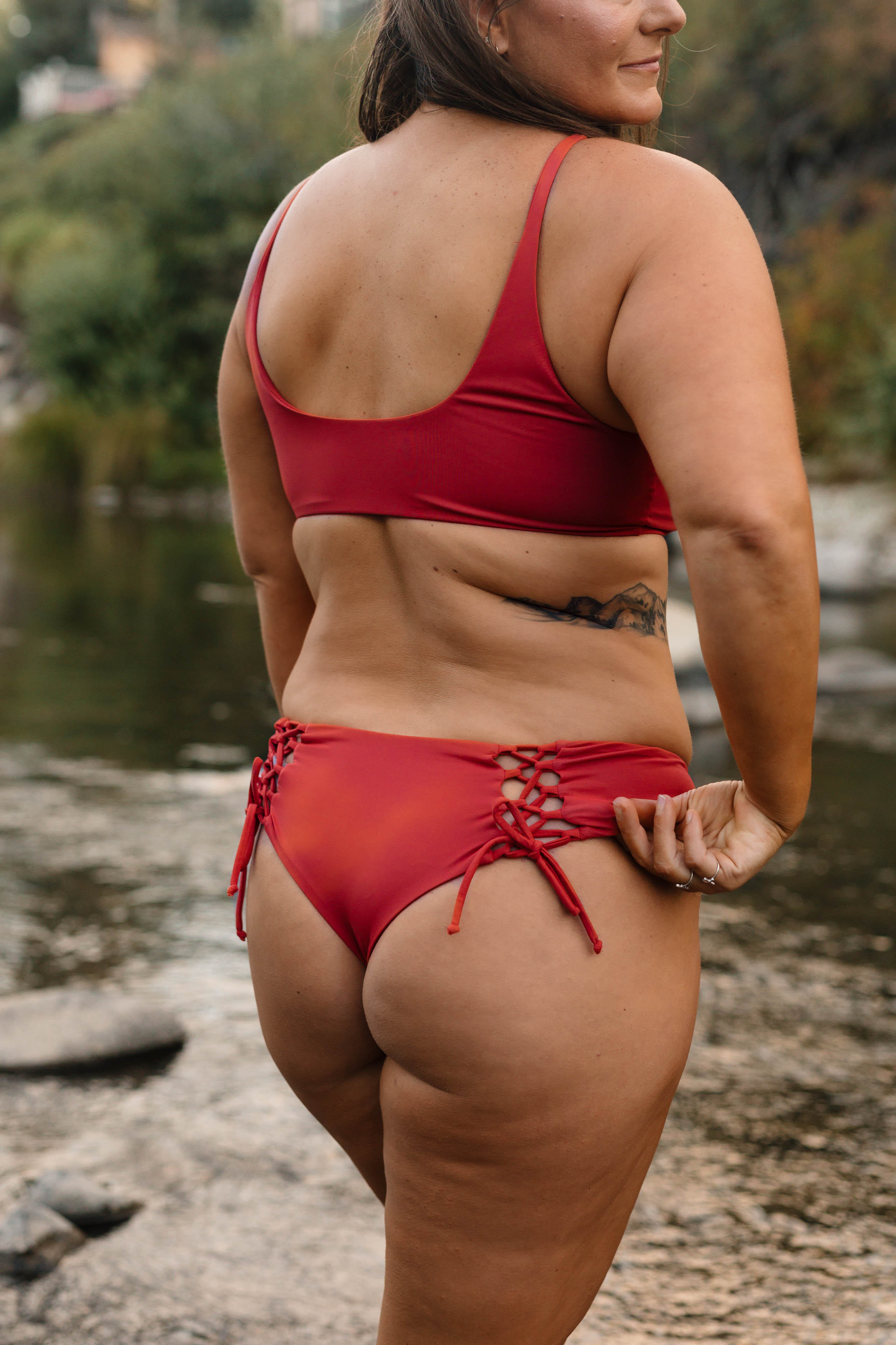 Best seller and a classic Strange design! Cheeky bottoms, low rise cut and adjustable fit knocks this out of the park. She sells out year after year.