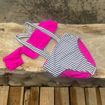 Welcome OVEROOS! Fun new bikini bottoms that have a modest bottom coverage and fun overall straps that criss-cross in the back.