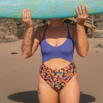 Color blocking and distinct cutout design one piece with micro adjustable shoulder straps and moderate booty coverage. This super sexy one-piece sports a scoop neck and scoop back with high hip leg cut. The long torso runs snug (we'd size up)