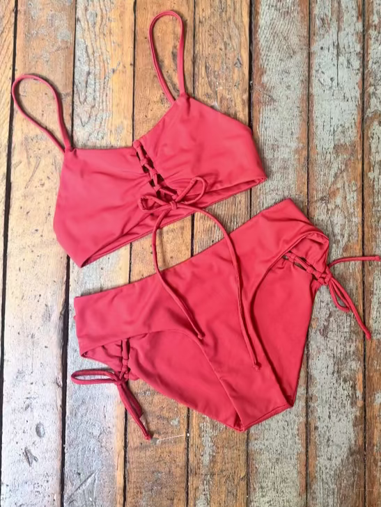 I got a different pair of bottoms that I didn't love, though the color was right, the style was not. Luckily I was able to work with Strange Bikinis and I opted to get a second pair of the Dallas dukes bottoms, because they fit so well! (Size Large)