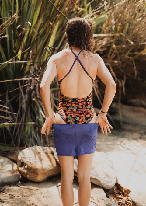 Shorts style bottoms, high waist. Retro inspired, so versatile that they can be worn as a swim suit, cover up or yoga short.