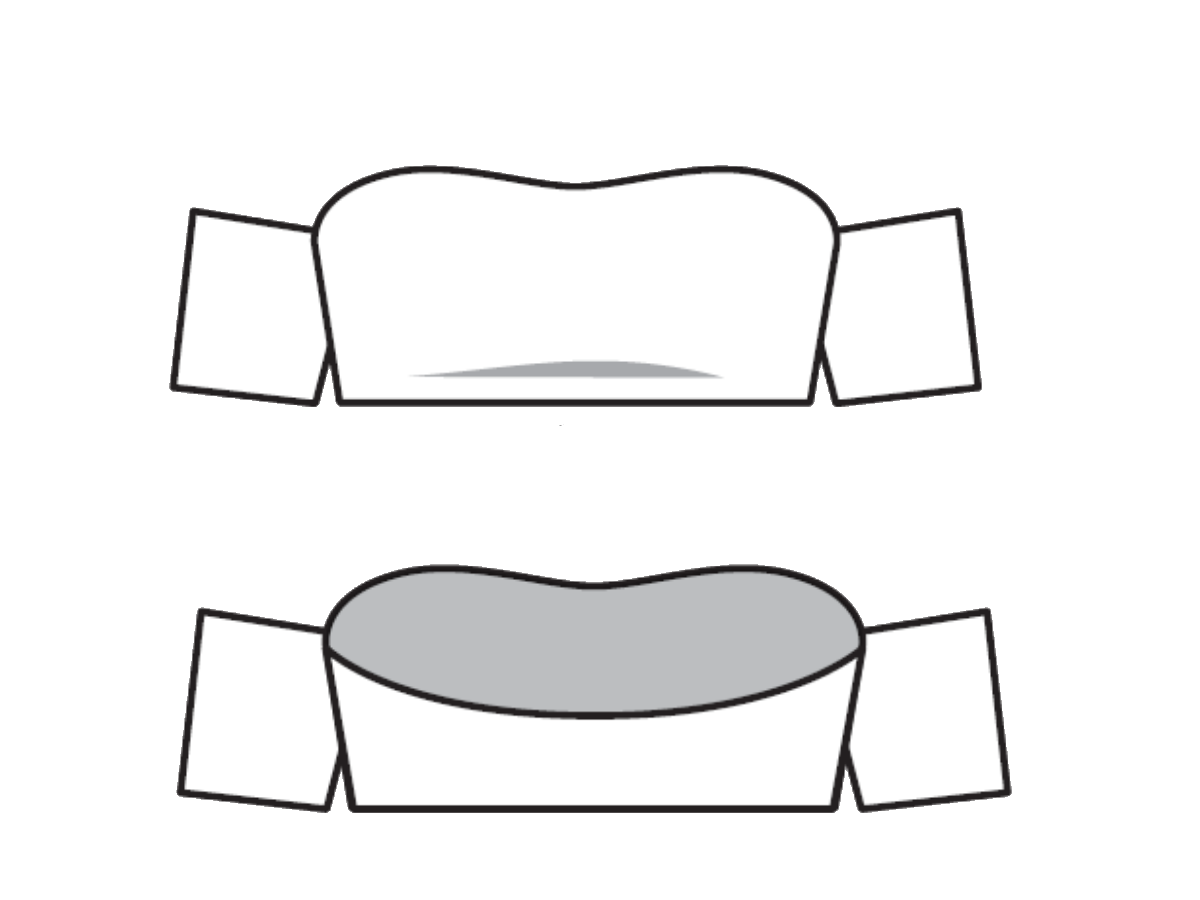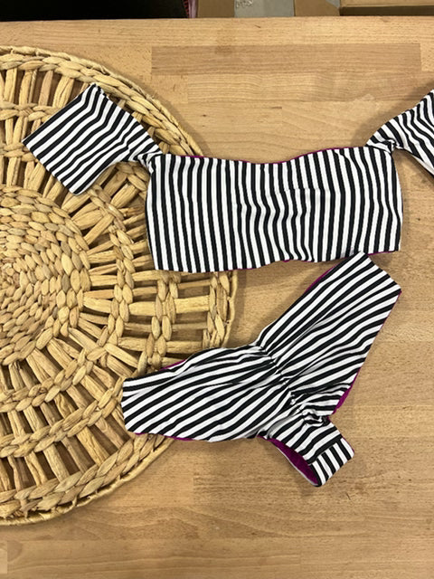 Classic bandeau top with cuff sleeves. Elastic in top and bottom of bandeau for extra support. Sleeves are roomy