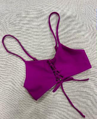 This top has our signature corset lace detail. New adjustable thin, over-the-shoulder straps provide support. This style is similar to a bandeau, yet with the support of thin straps.