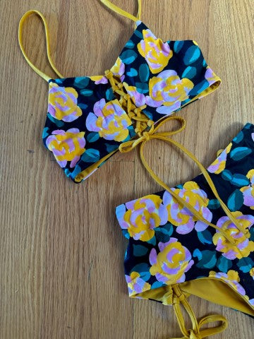 This print is my favorite! The colors have stayed so vivid even with very frequent use in a pool. I love the corset ties at the front because you can size down and really enhance your cleavage