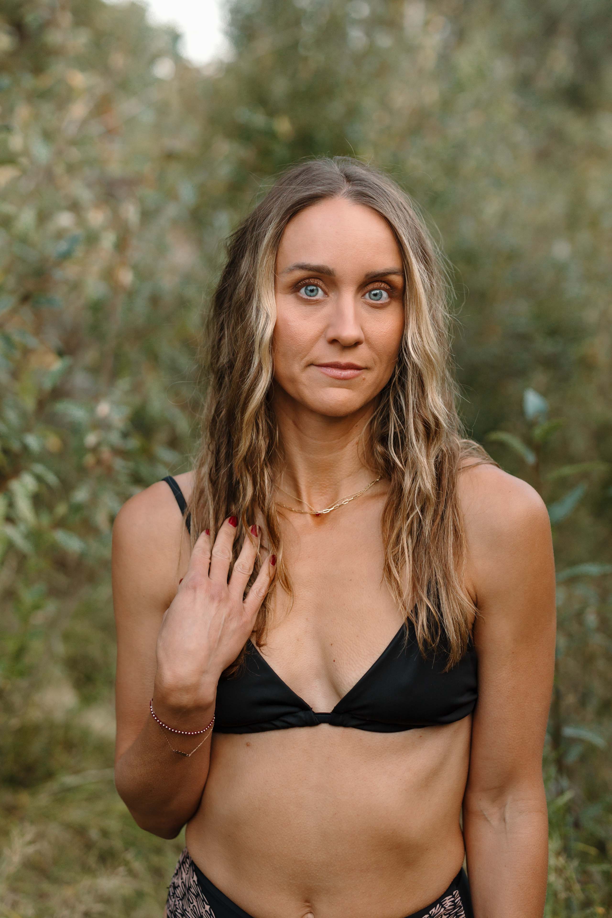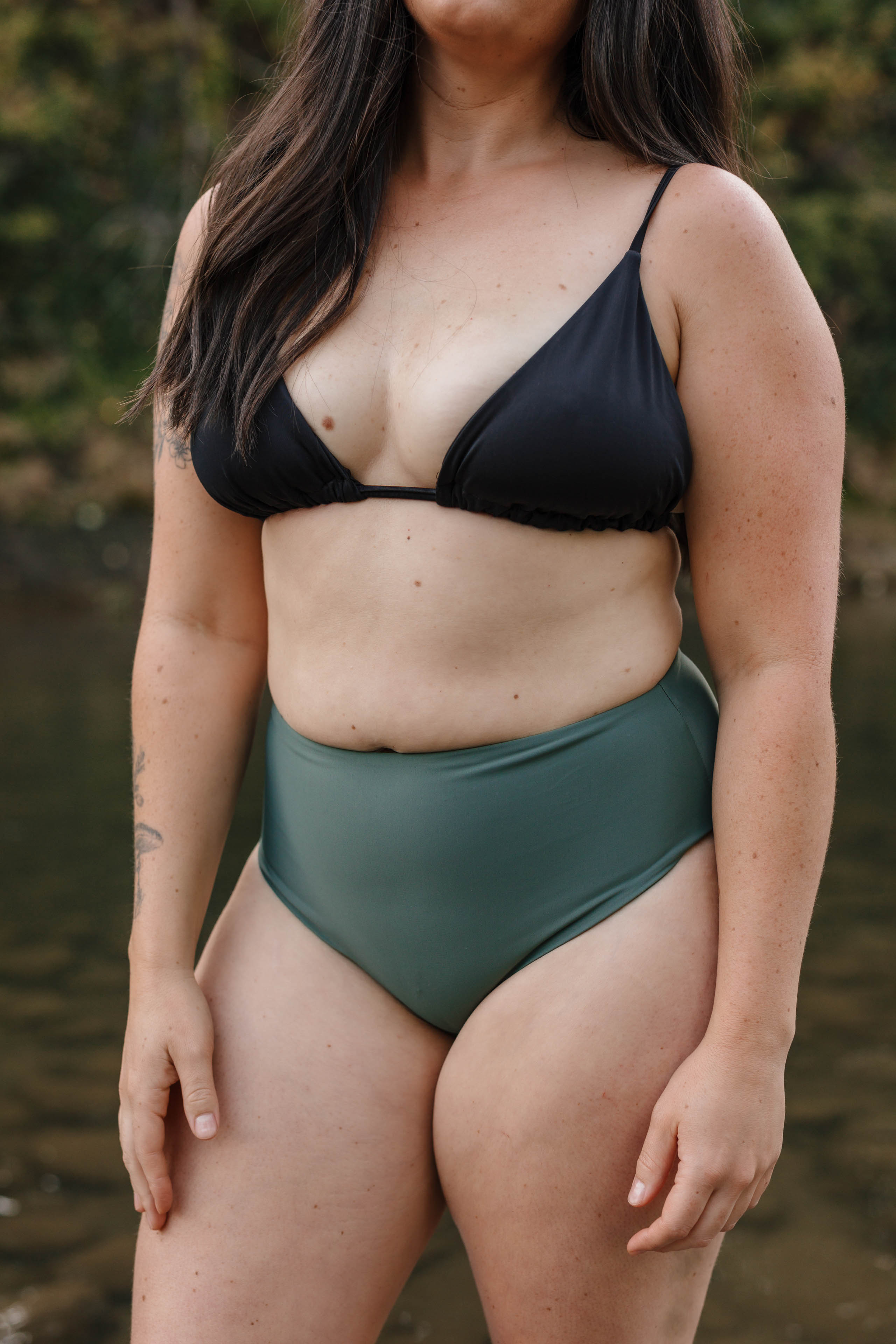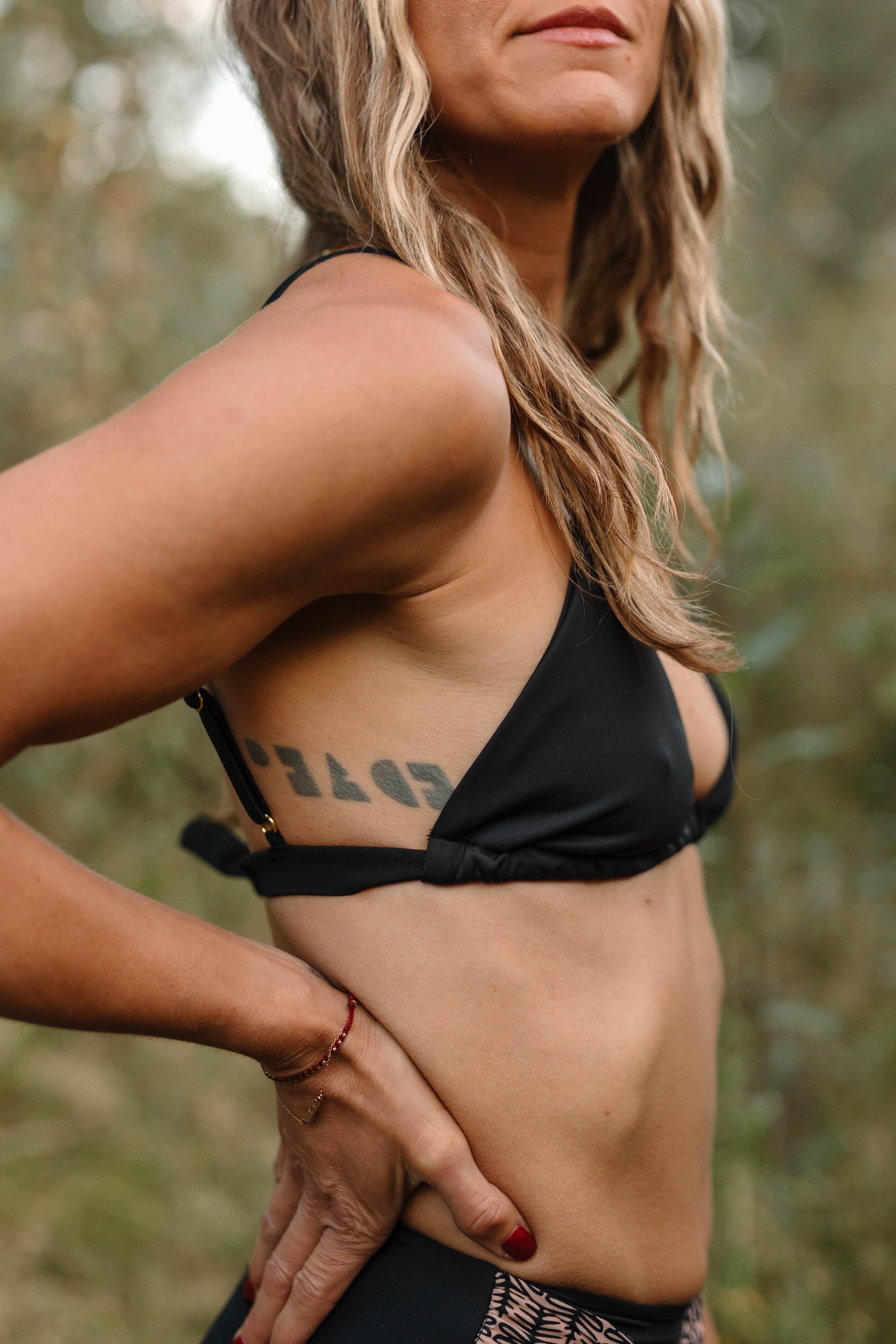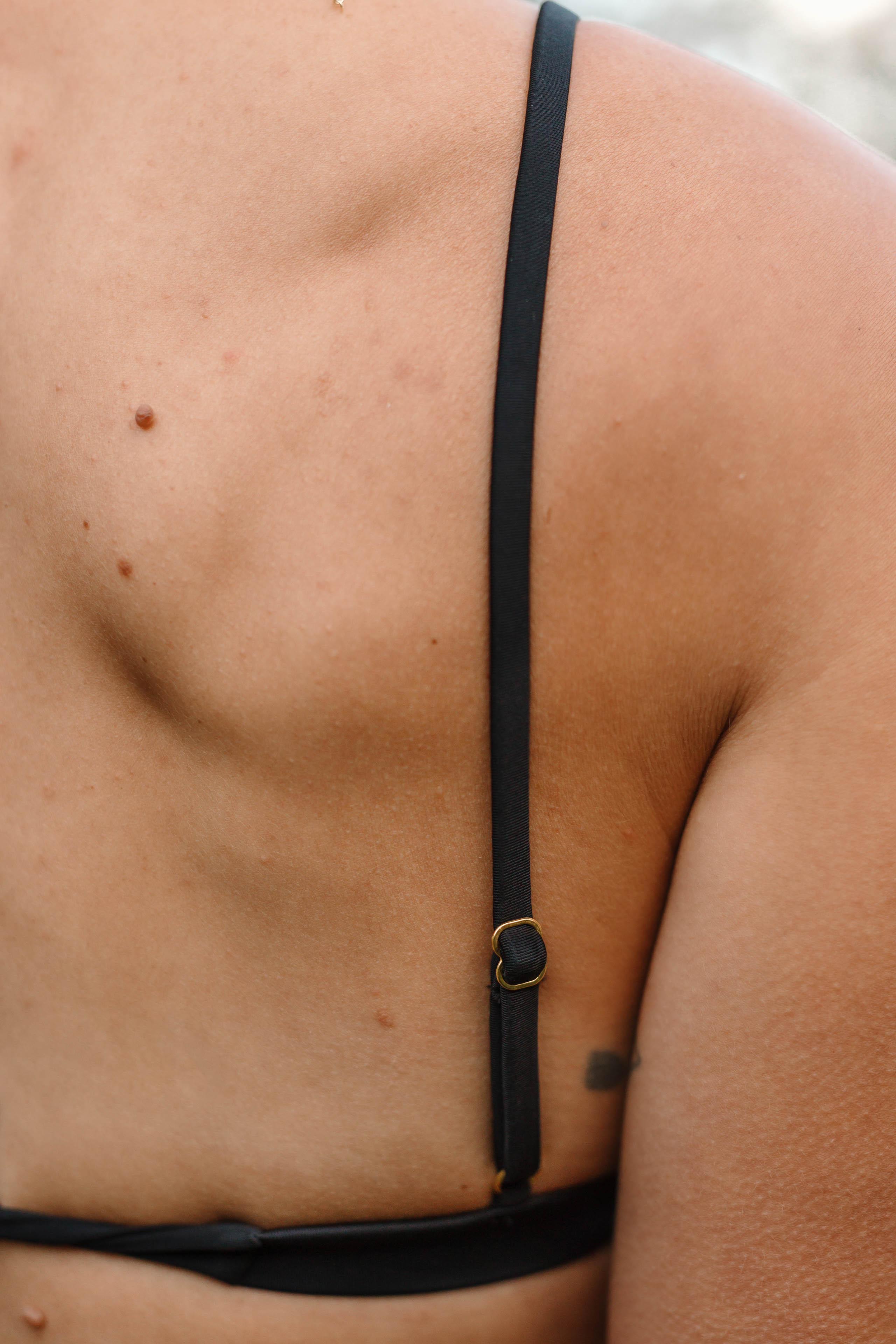 Corvallis Triangle top. Minimal triangle coverage with great support. Thin shoulder straps with sliders and a center back thick elastic bust band.