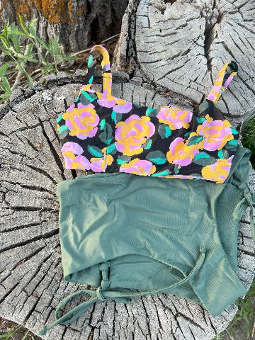 We offer this top as a solution for large bust women with a smaller rib cage. This top has darts and elastic in the rib cage to contour nicely. The classic over the should straps offer sliders and thick elastic for support. We hope you love it.