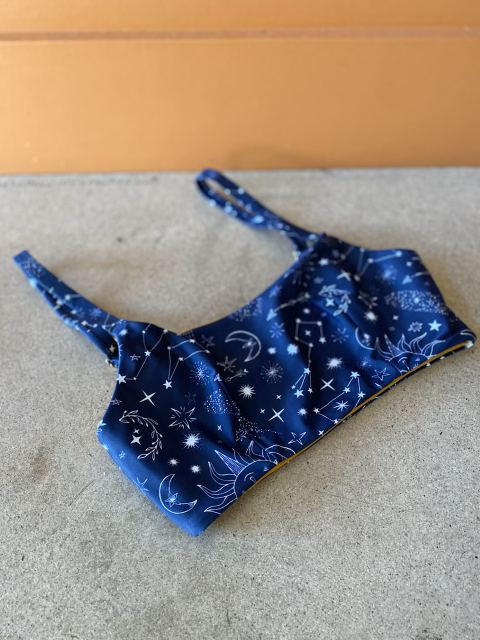Color combination notes: Medina and Taffy Stripe are lined with Taffy (light blue). Celestial is lined with Sun. This might come as a surprise to some but we wanted you to know that part of our sustainability program is to reduce our carbon footprint. In an aim to achieve this, we used our old "sun" fabric to line these items. While we design our items to be reversible, Corvallis does have some seams that will show when worn on the reverse and is therefore, not considered fully reversible.