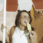 This fun and versatile top makes a comeback. High neck offers max sun protection and great support for full bust and active girlies. Our neck opening is running snug, this is great for active girls, but if you're worried about your big head (we kid) you can leave a note for us to make it wider for ya! Laser cut details down spine make this style a fave and keepin it Strange!