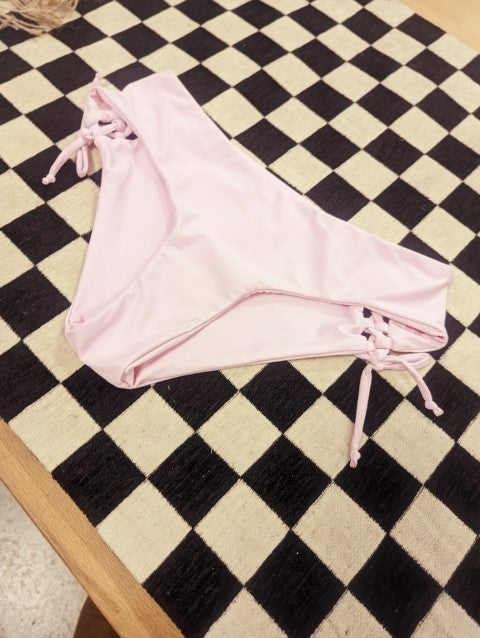 Don't sleep on this best seller. Cheeky bottoms, low rise cut and adjustable fit knocks this out of the park. She sells out year after years. We did shorten the straps and she is running small - so just size up babe.