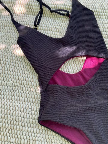 Color blocking and distinct cutout design one piece with micro adjustable shoulder straps and moderate booty coverage. This super sexy one-piece sports a scoop neck and scoop back with high hip leg cut. Runs slightly snug, we do recommend a snug fit when dry, because fabric relaxes once wet.