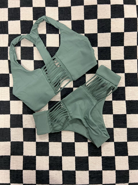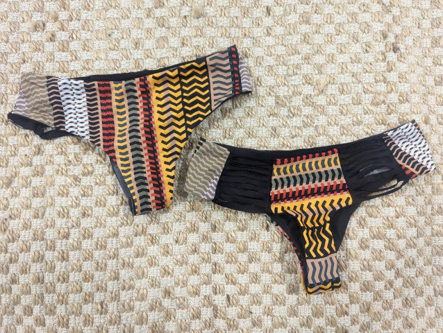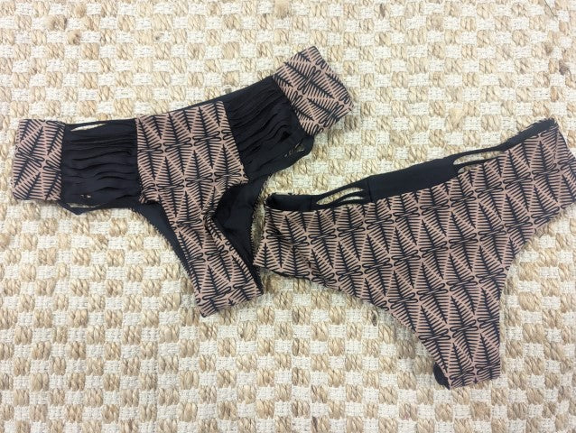 Best selling minimal coverage bottoms with laser cut details. These low rise thong style bottoms always sell out. They run slightly smaller so size up if you're sweatin' it. A snug fit is always desired as fabric relaxes once wet.