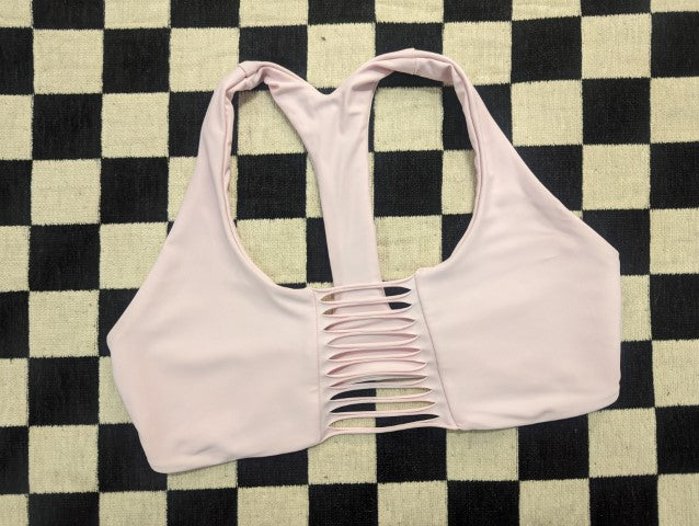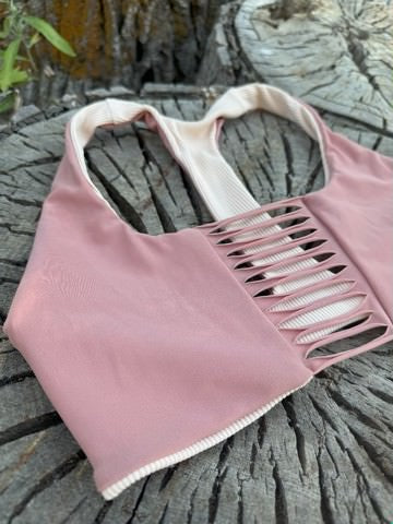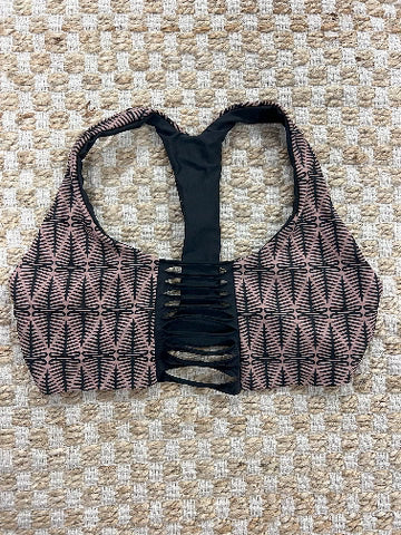 This T-back top provides a sporty fit but the detailed laser cuts in the front keep the top sexy. Strangers love to wear this as a sports bra for light activity. It’s the perfect piece for our sporty and sexy Strangers. We suggest a snug fit when dry, because fabric relaxes once wet. True to size