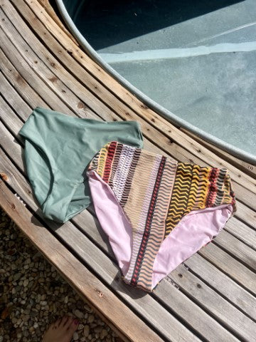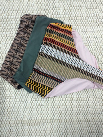 Classic high waist bottoms. Moderate booty coverage. Snug athletic fit.