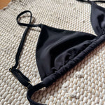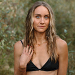 Corvallis Triangle top. Minimal triangle coverage with great support. Thin shoulder straps with sliders and a center back thick elastic bust band.