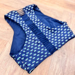 This fun and versatile top makes a comeback. High neck offers max sun protection and great support for full bust and active girlies. It's is meant to be worn with the lasercuts on the back but some legit STRANGERS love to wear it with the cuts on the front as well, up to you!