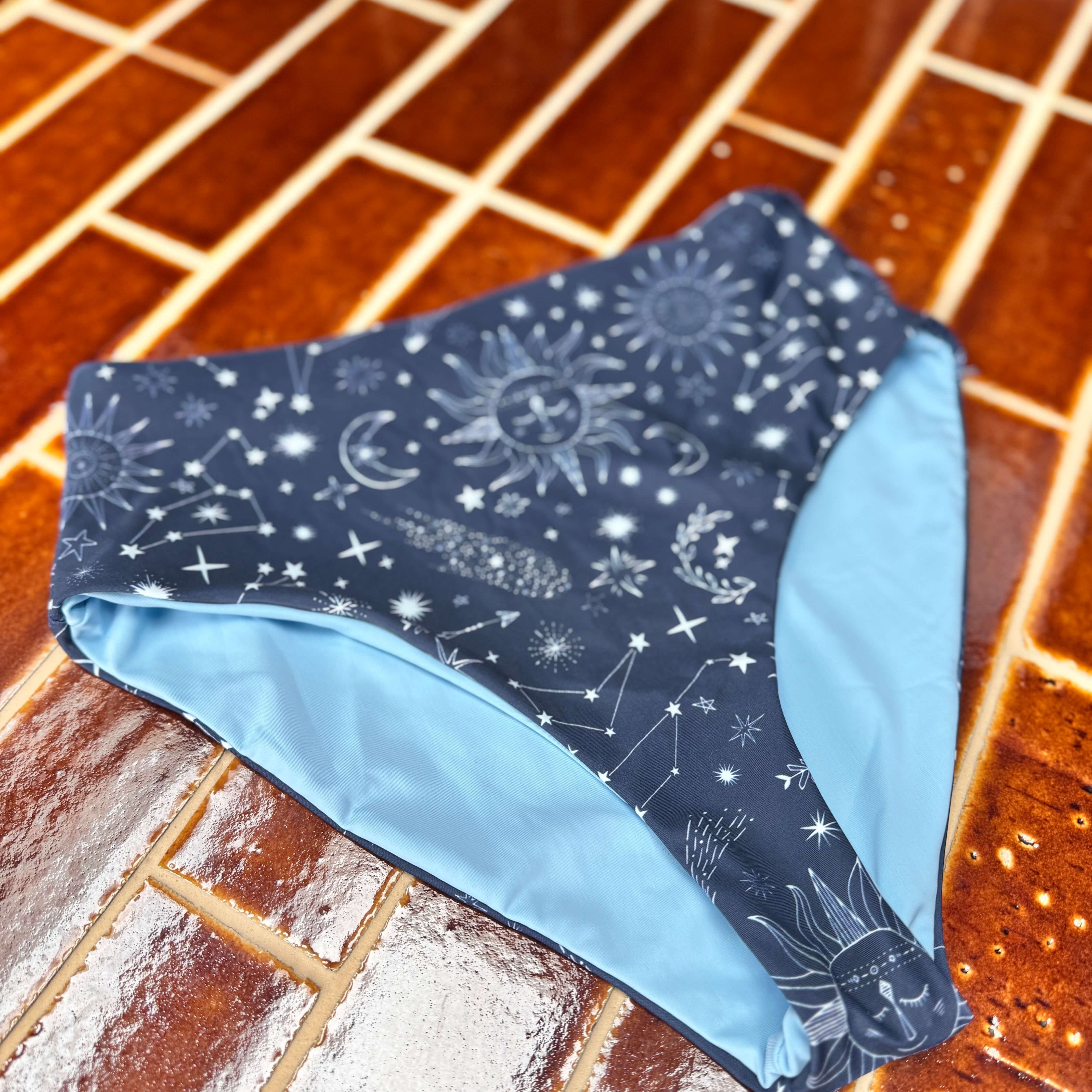 Shorts style bottoms, high waist. Retro inspired, so versatile that they can be worn as a swim suit, cover up or yoga short.