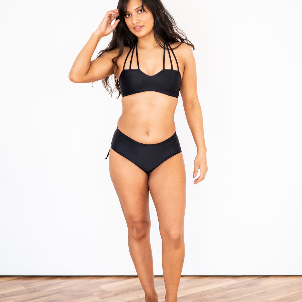 Modest coverage bottoms, low rise and adjustable fit make it so you can be comfortable no matter where your body is at