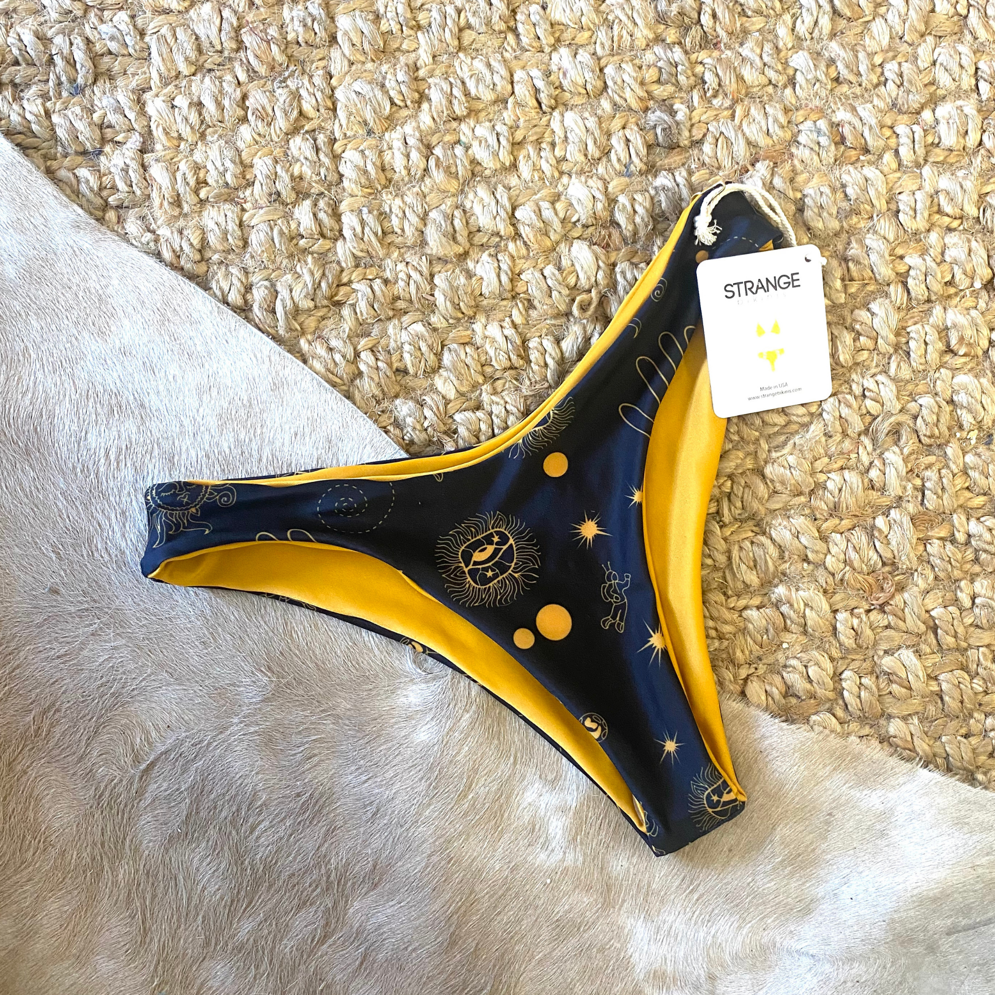 Cheeky bottoms that are simple. Wear high on your hips for that 90s french cut style. These bottoms can be worn backwards as well, creating more of a thong high hip style bottom!