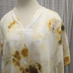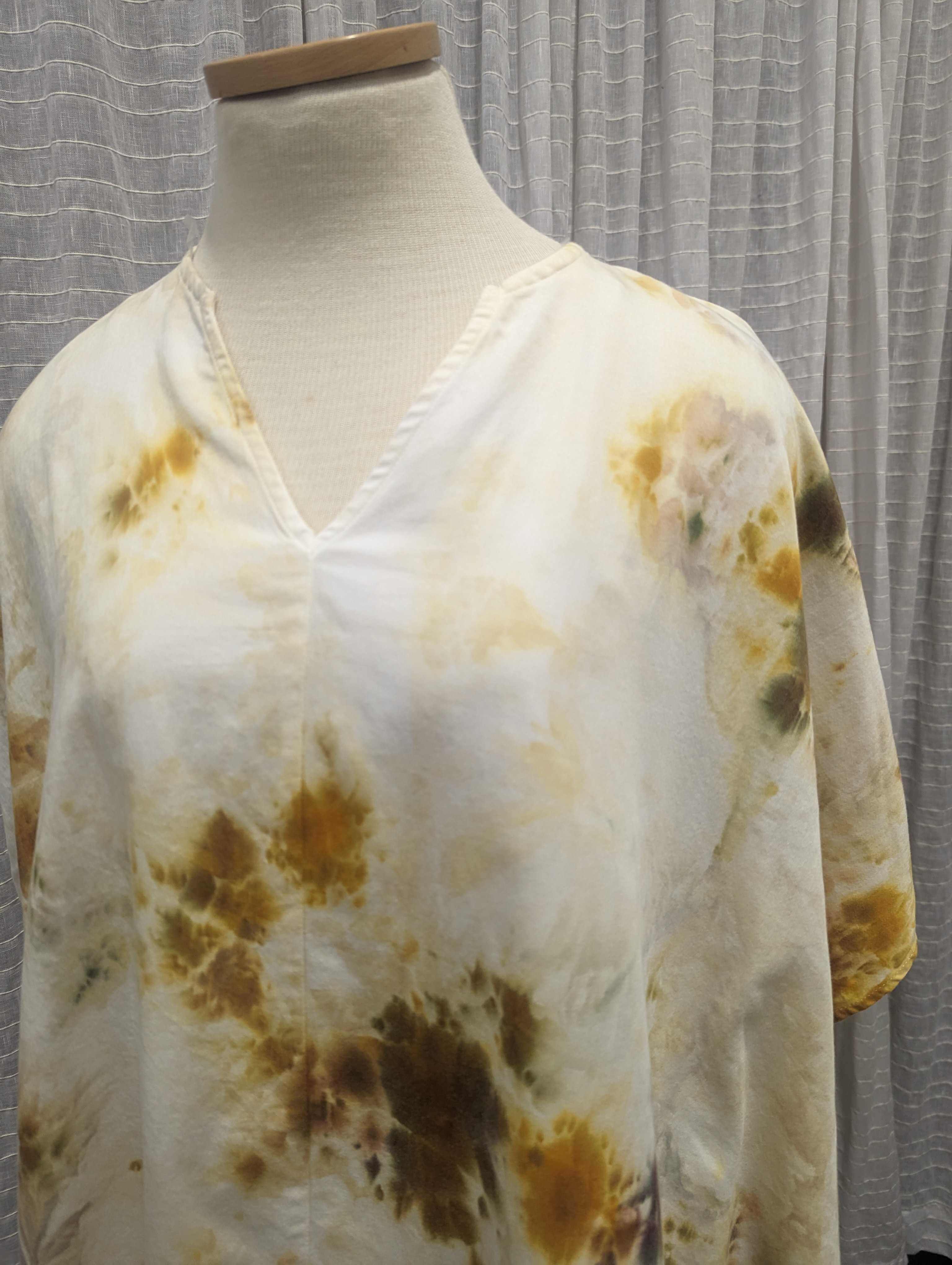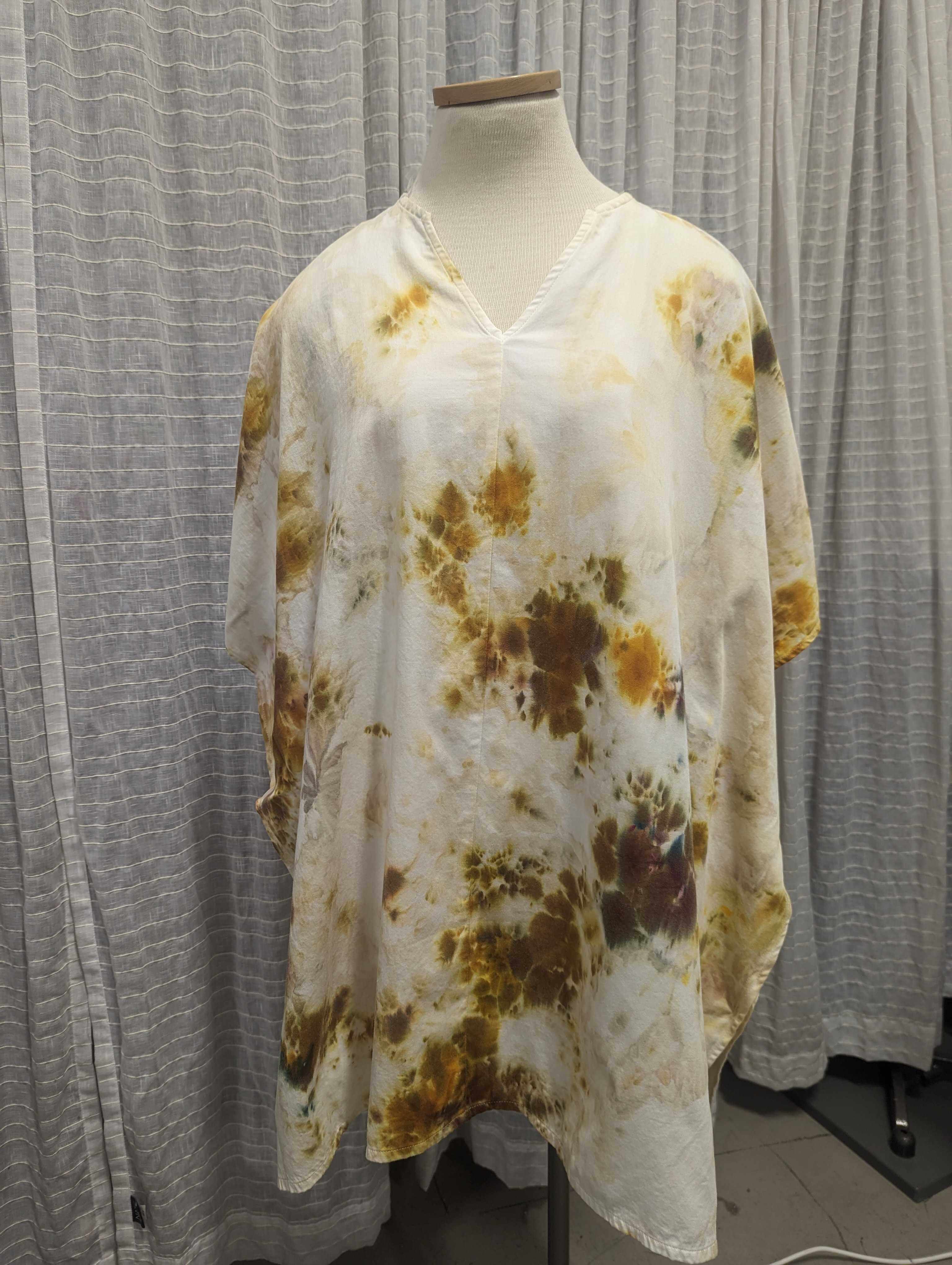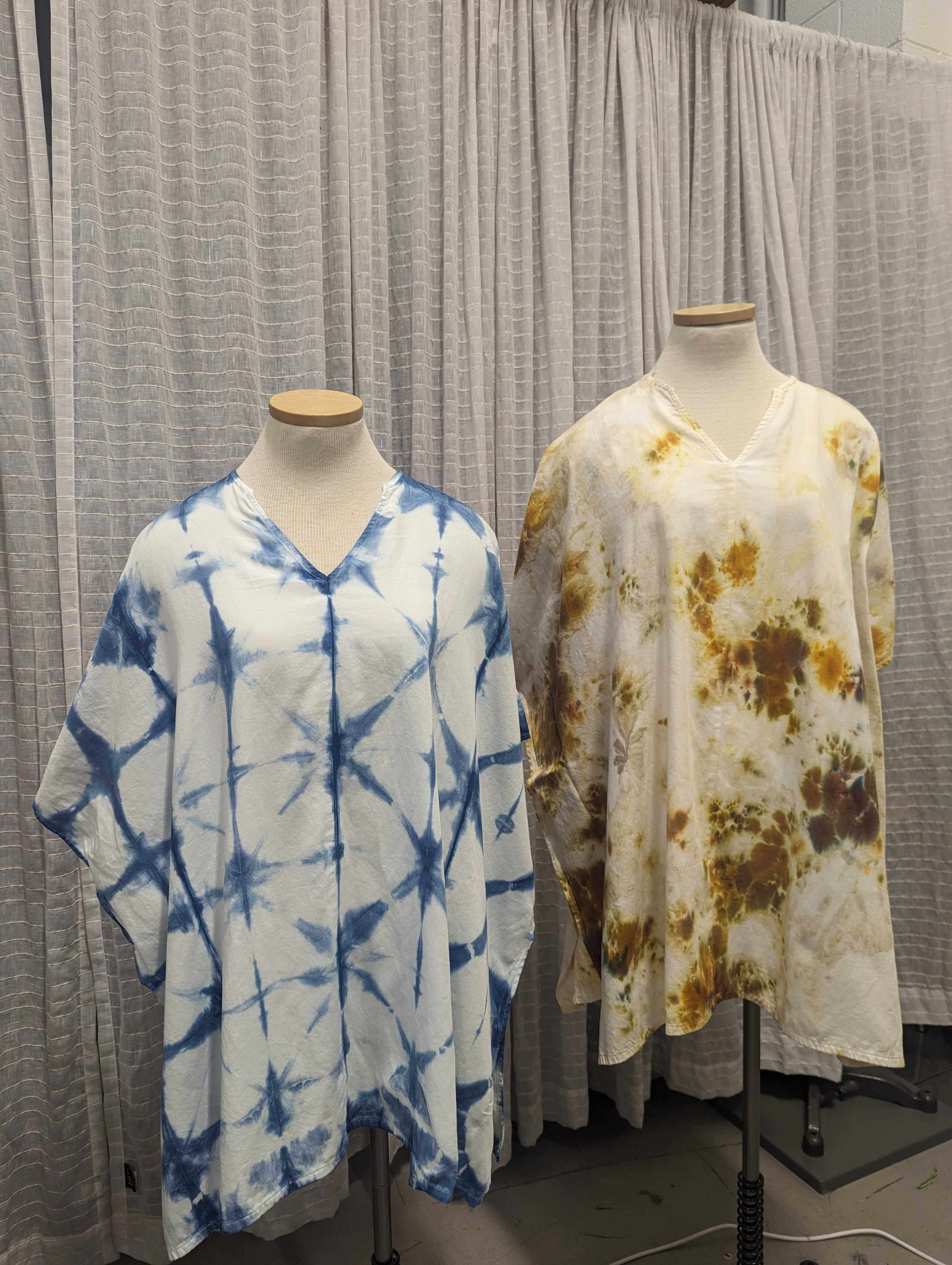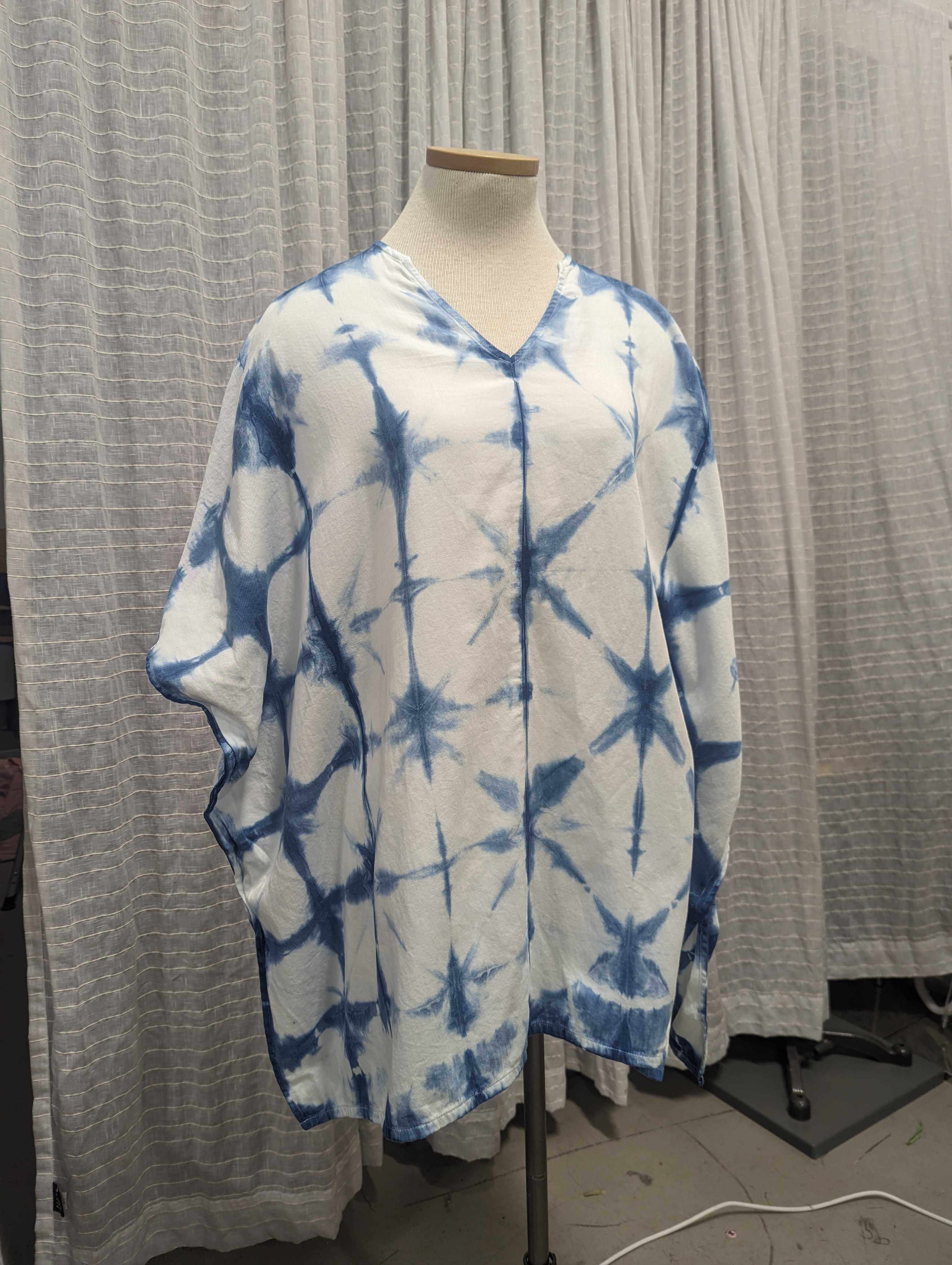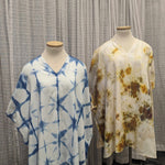 Please keep in mind that because these were hand dyed, the design you receive will not be exactly the one in the picture. The blue option is always blue and similar to what's pictured, but the mustard option may have more red/green in the garment you receive.
